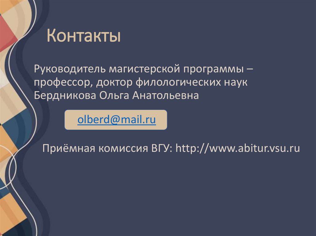 КонтактыРуководитель магистерской программы –