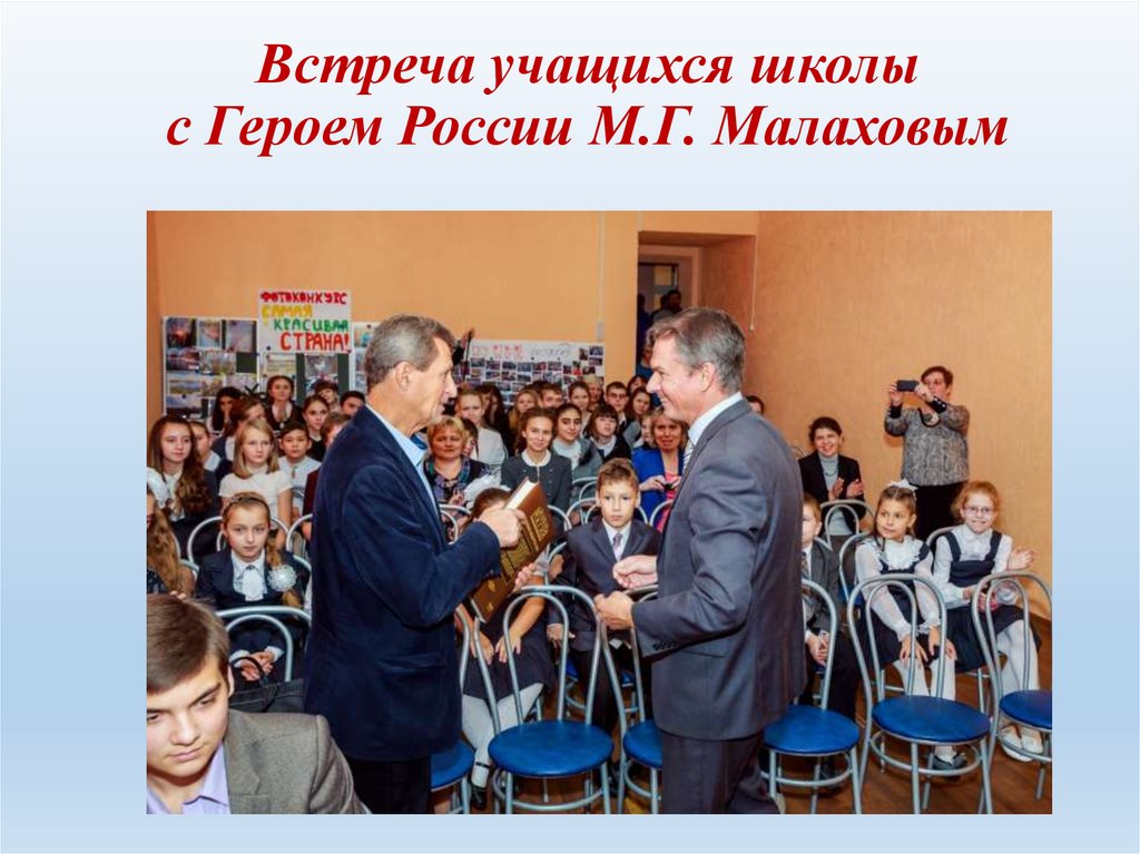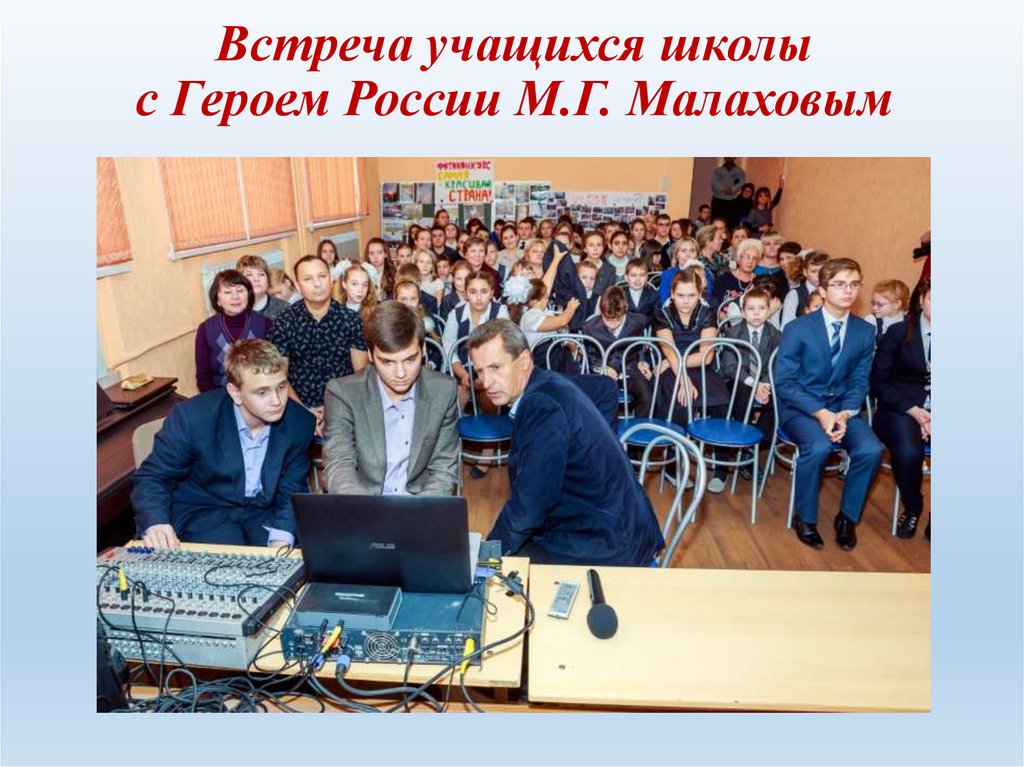 Встреча учащихся школыс Героем России М.Г. Малаховым