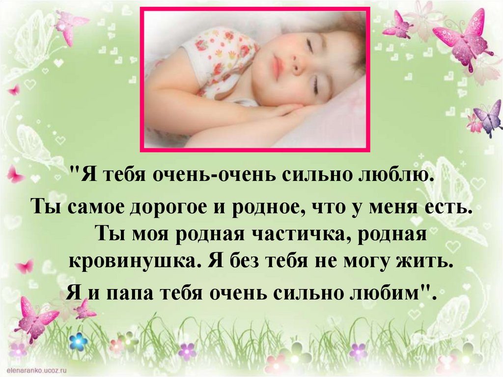 "Я тебя очень-очень сильно люблю.Ты самое дорогое и родное, что у меня есть.