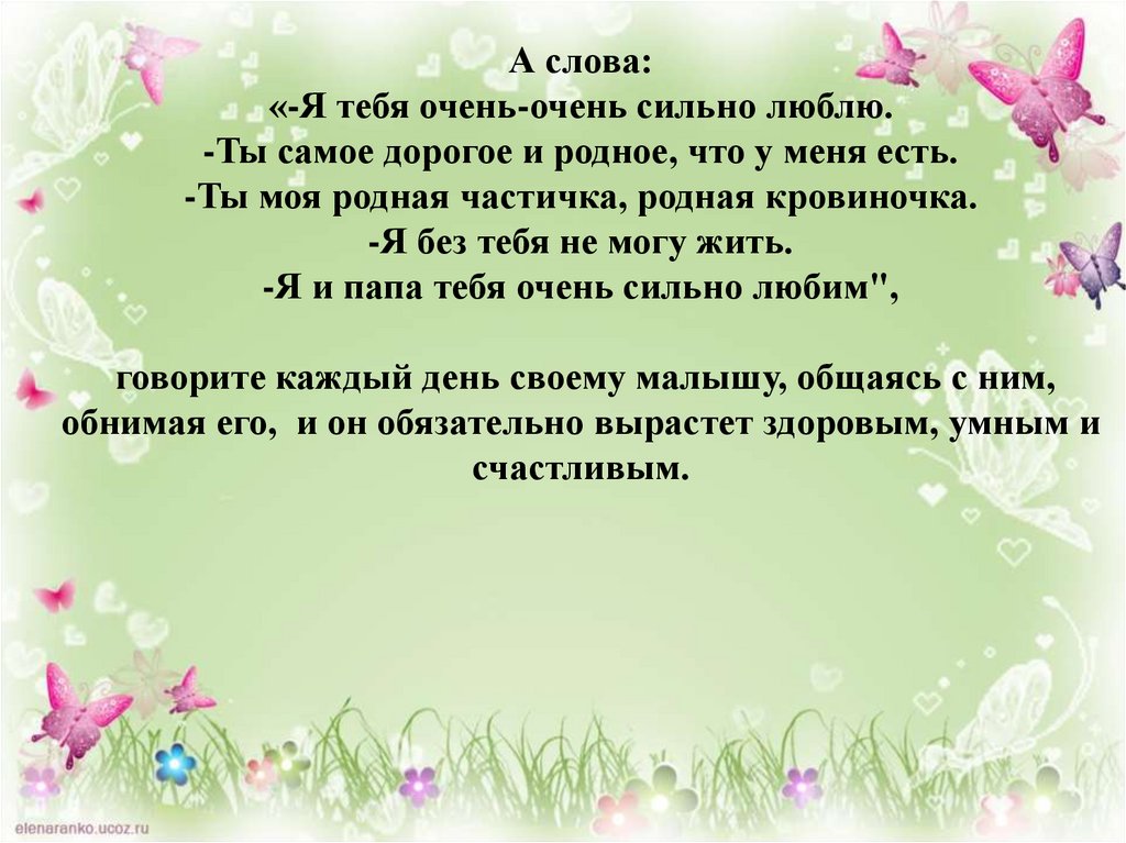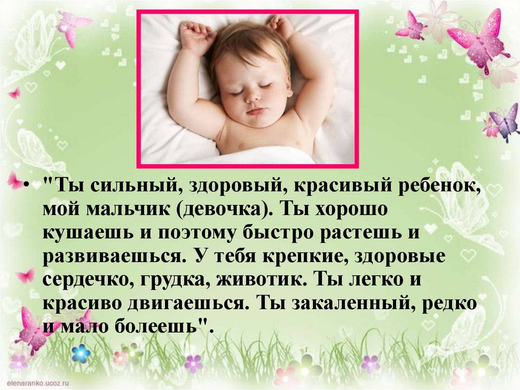 • "Ты сильный, здоровый, красивый ребенок,мой мальчик (девочка). Ты хорошо