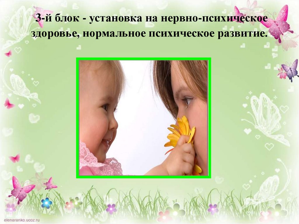 3-й блок - установка на нервно-психическоездоровье, нормальное психическое развитие.