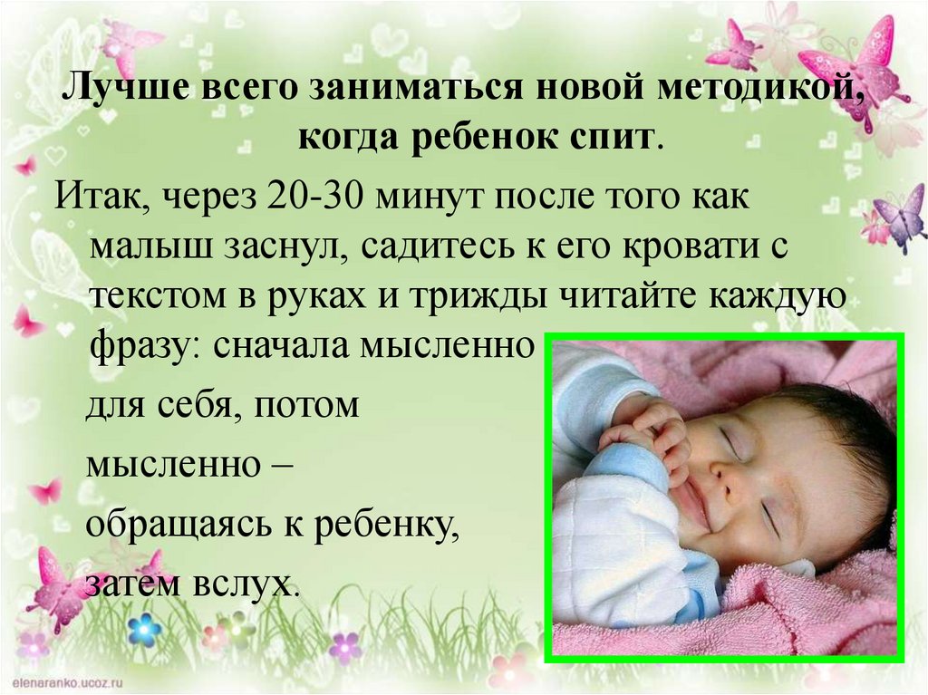 Лучше всего заниматься новой методикой,когда ребенок спит.