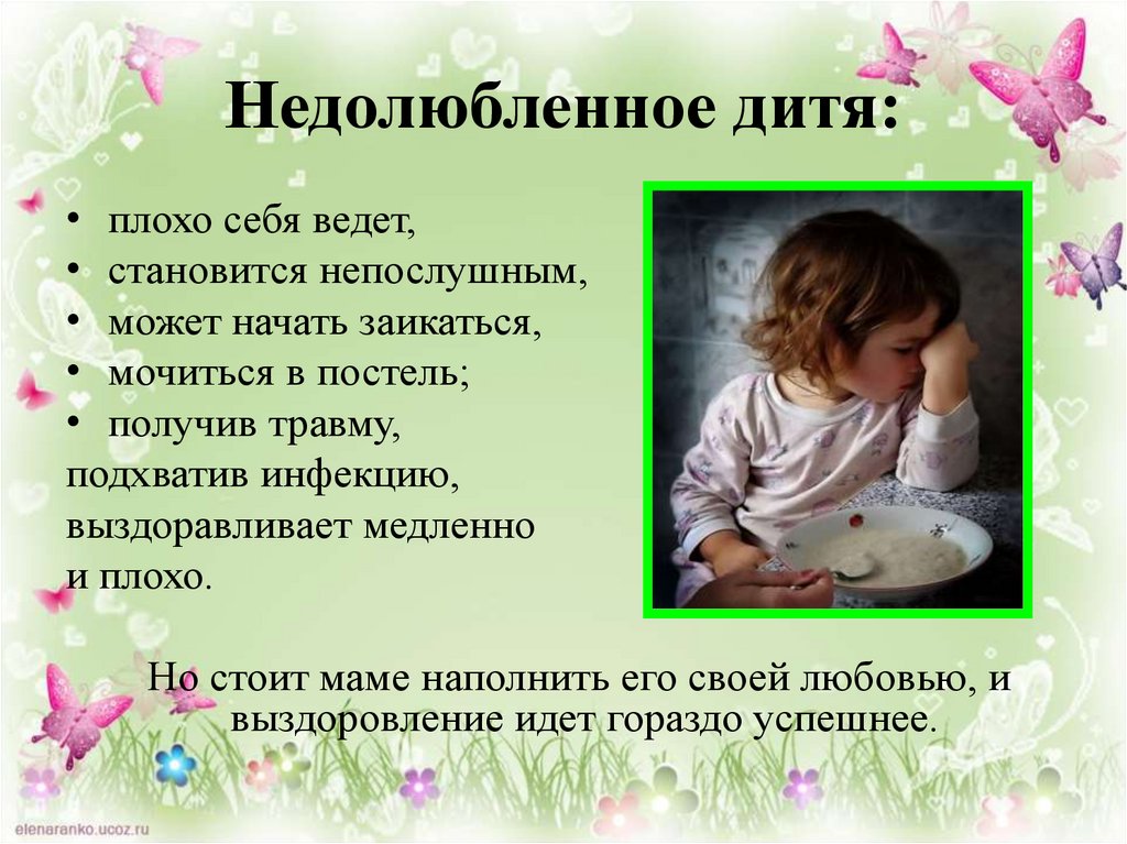 Недолюбленное дитя:• плохо себя ведет,