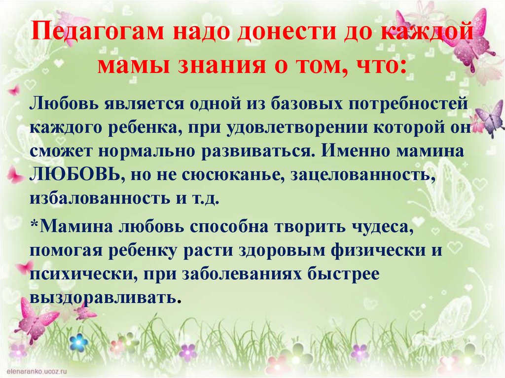 Педагогам надо донести до каждоймамы знания о том, что: