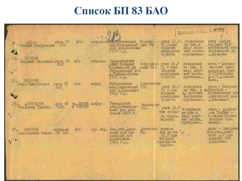 Список БП 83 БАО(Слайд 13 Вязка)