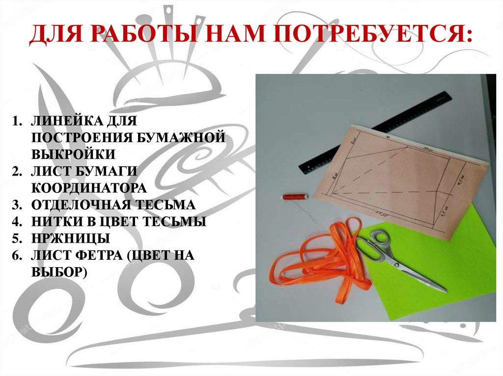 ДЛЯ РАБОТЫ НАМ ПОТРЕБУЕТСЯ:1. ЛИНЕЙКА ДЛЯ