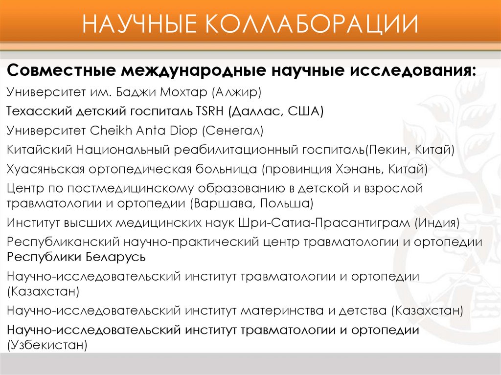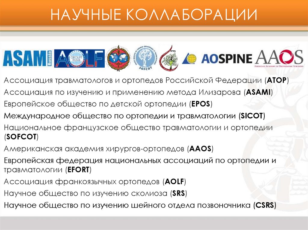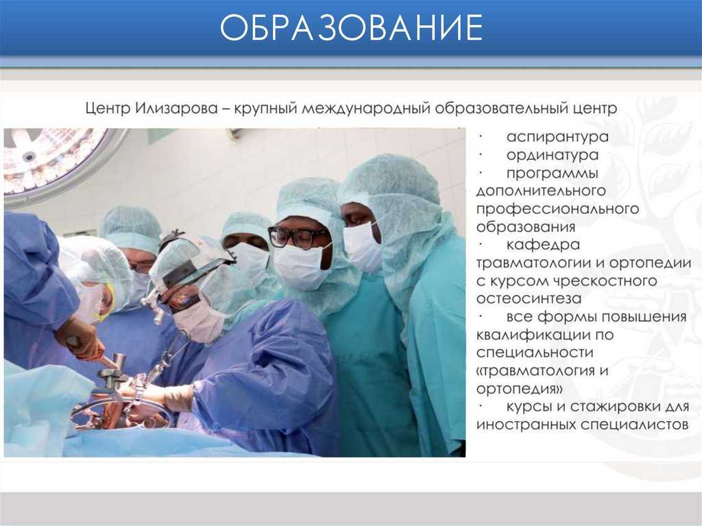 ОБРАЗОВАНИЕРазвитие кафедры ТО Центра Илизарова
