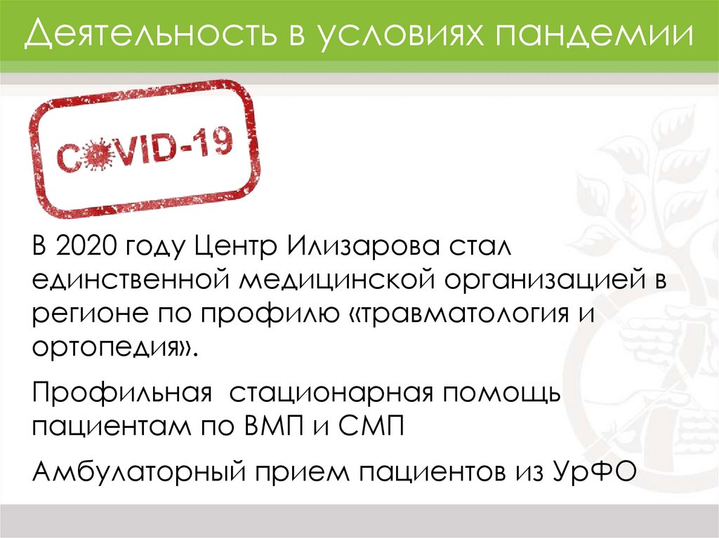 Деятельность в условиях пандемииВ 2020 году Центр Илизарова стал