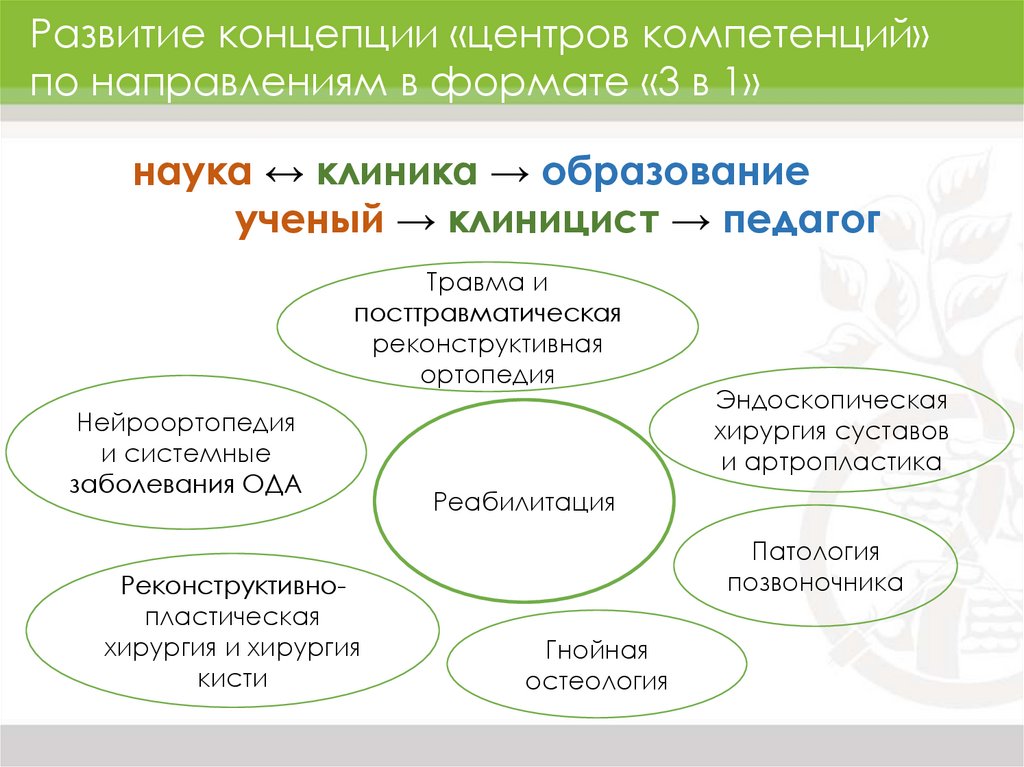 Развитие концепции «центров компетенций»по направлениям в формате «3 в 1»