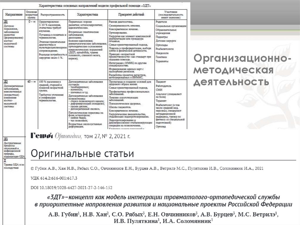 ОРГАНИЗАЦИОННО-МЕТОДИЧЕСКИЕ ДЕЯТЕЛЬНОСТЬКурация по профилю «травматология и ортопедия»