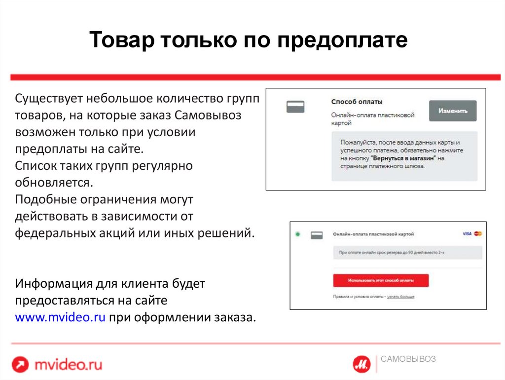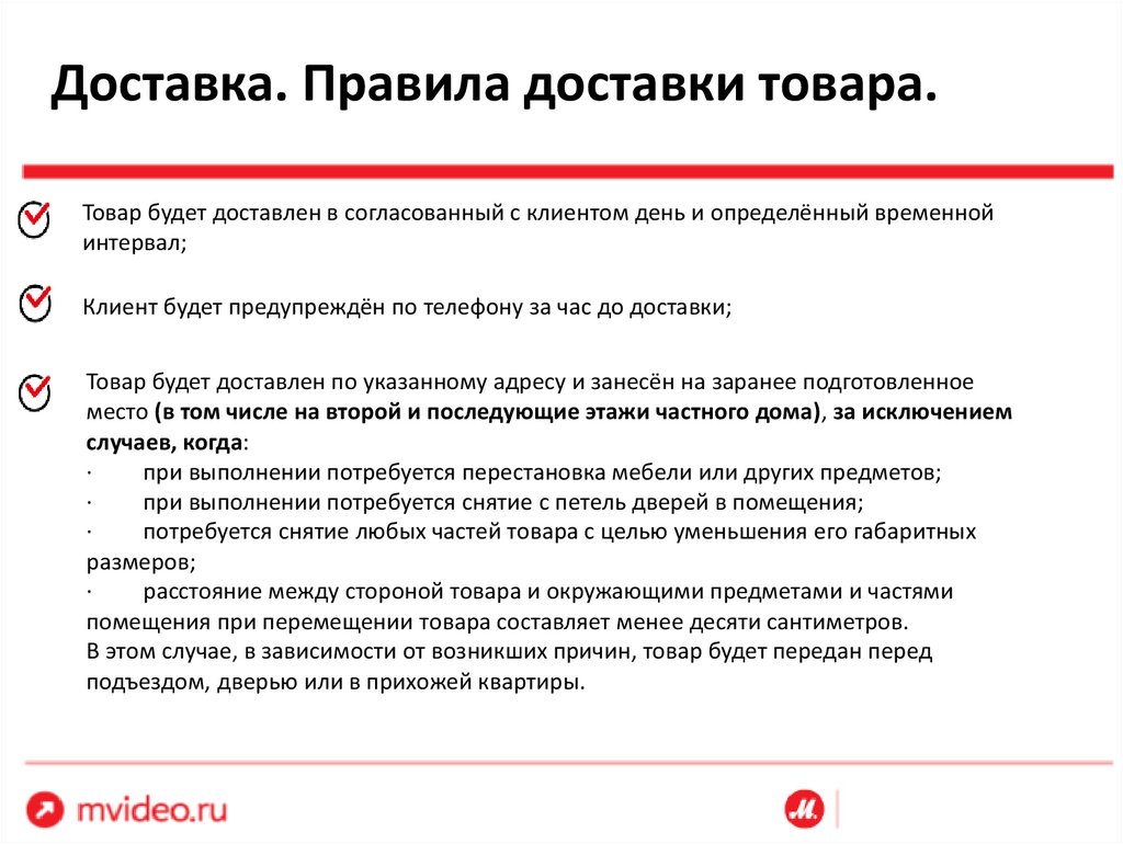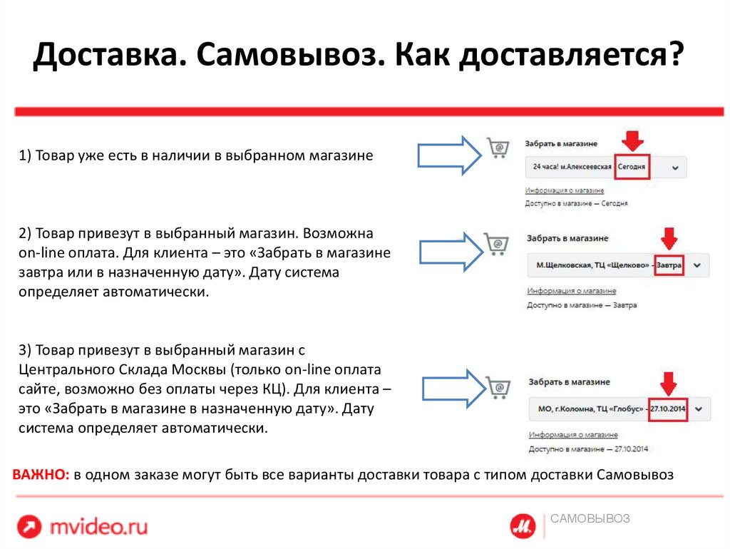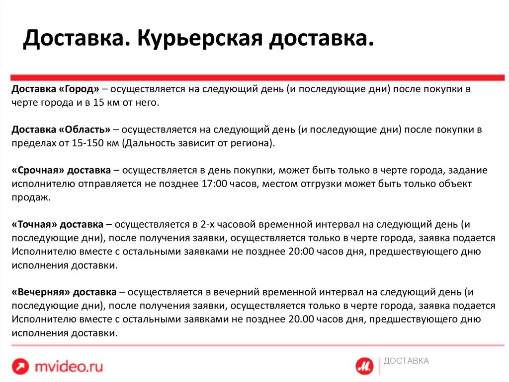 Доставка mvideo. Типы доставок