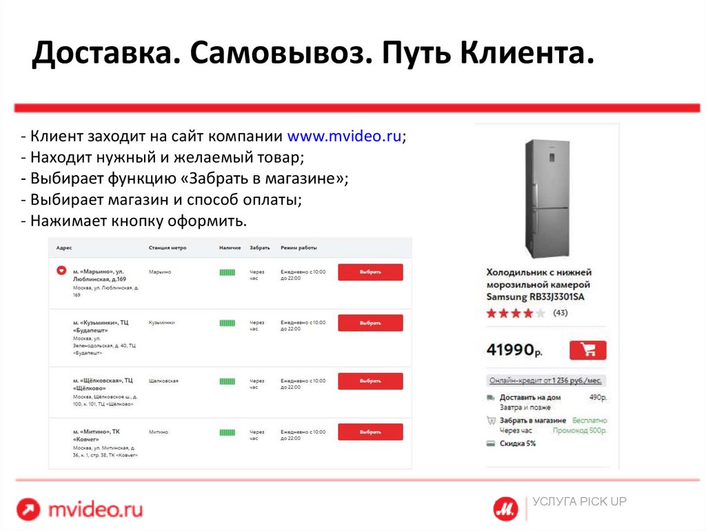 Доставка. Самовывоз. Путь Клиента.- Клиент заходит на сайт компании www.mvideo.ru;