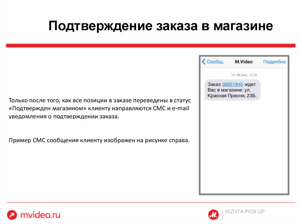 подтверждения заказа в магазине