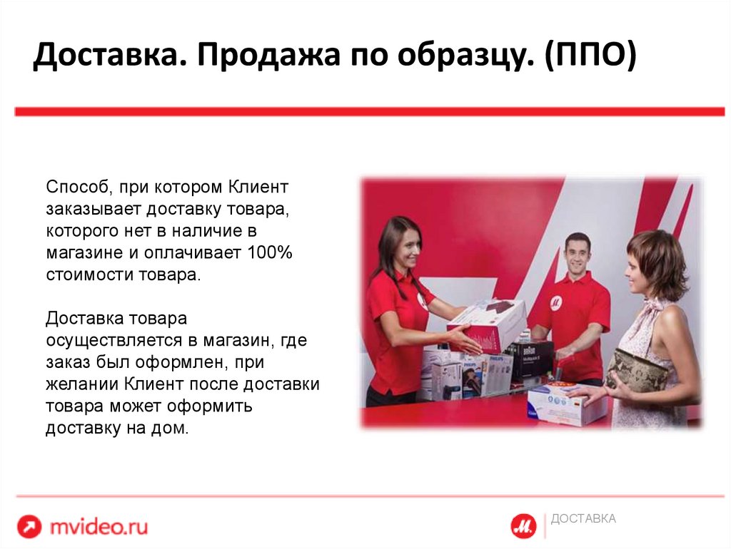 Доставка. Продажа по образцу. (ППО)Способ, при котором Клиент