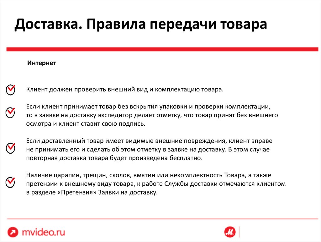 Доставка. Правила передачи товараИнтернет