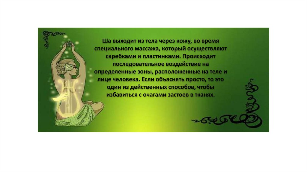 Ша выходит из тела через кожу, во времяспециального массажа, который осуществляют