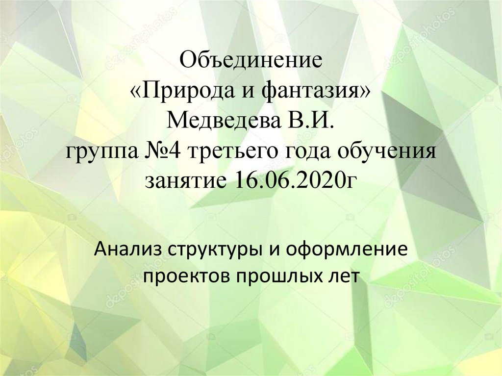 Объединение «Природа и фантазия». Анализ структуры и оформление проектов прошлых лет