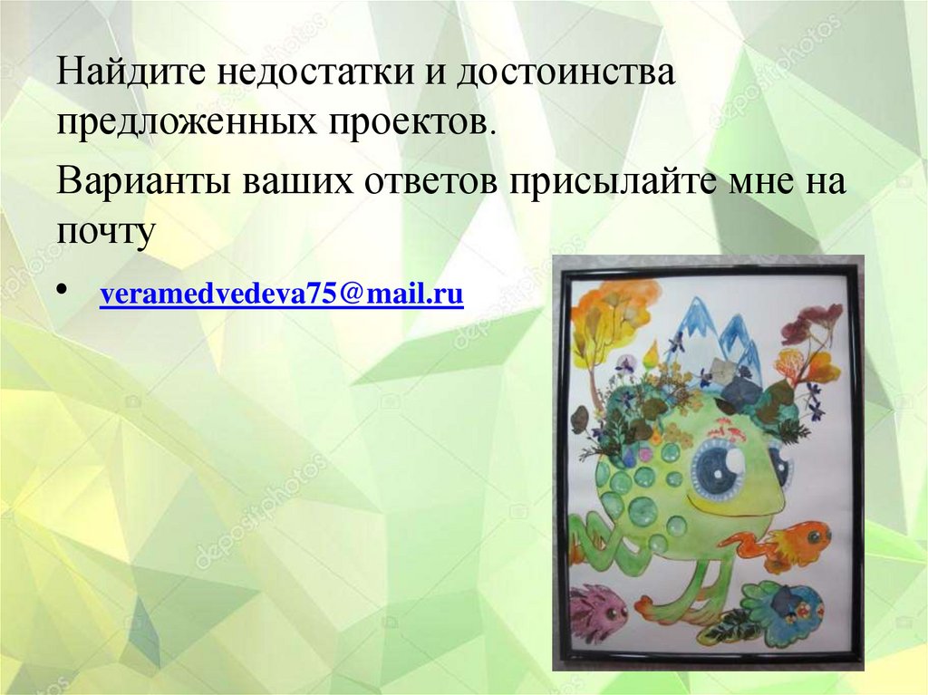 Найдите недостатки и достоинствапредложенных проектов.