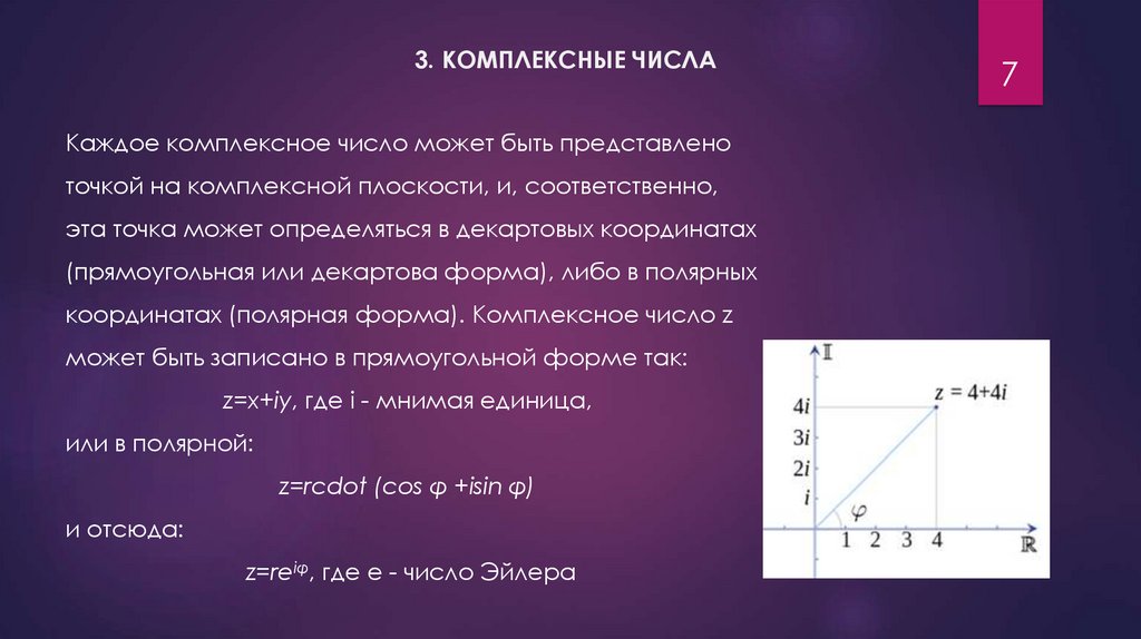 3. КОМПЛЕКСНЫЕ ЧИСЛАКаждое комплексное число может быть представлено