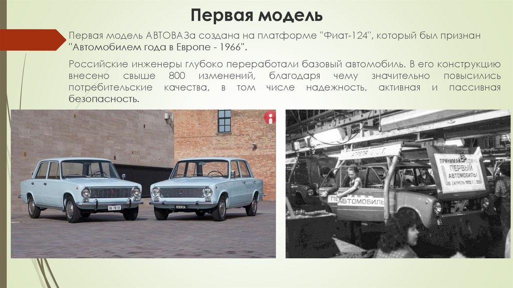 Первая модельПервая модель АВТОВАЗа создана на платформе ''Фиат-124'', который был признан