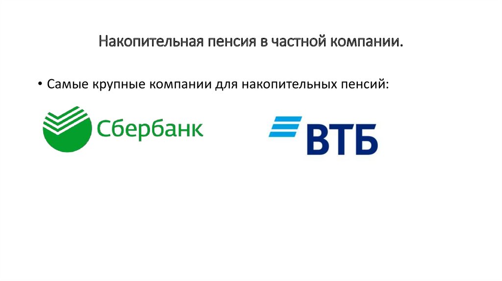 Накопительная пенсия в частной компании.• Самые крупные компании для накопительных пенсий:
