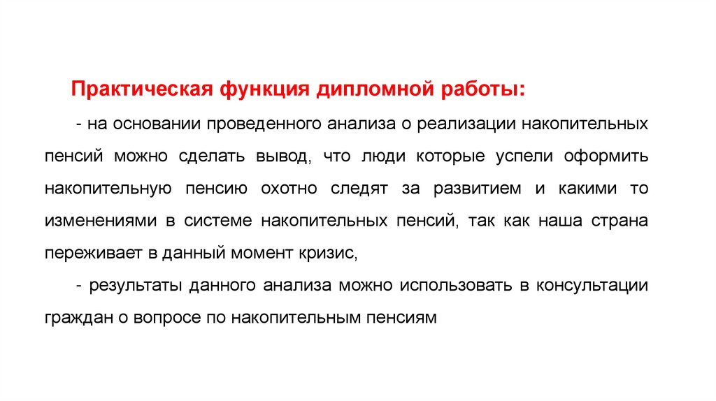 Практическая функция дипломной работы:- на основании проведенного анализа о реализации накопительных