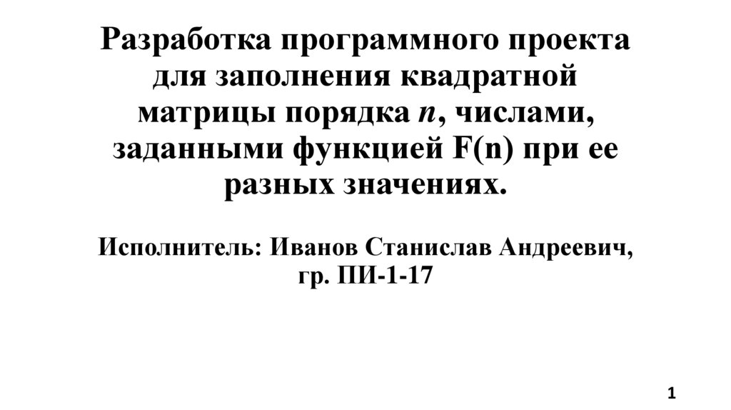 Разработка программного проекта для заполнения квадратной матрицы порядка n, числами, заданными функцией F(n)