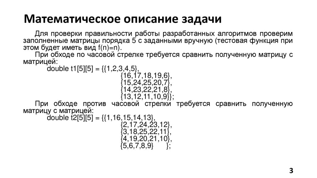 Математическое описание задачиДля проверки правильности работы разработанных алгоритмов проверим