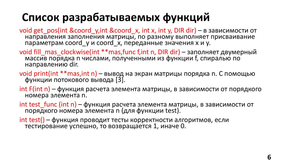Список разрабатываемых функцийvoid get_pos(int &coord_y,int &coord_x, int x, int y, DIR dir) – в зависимости от