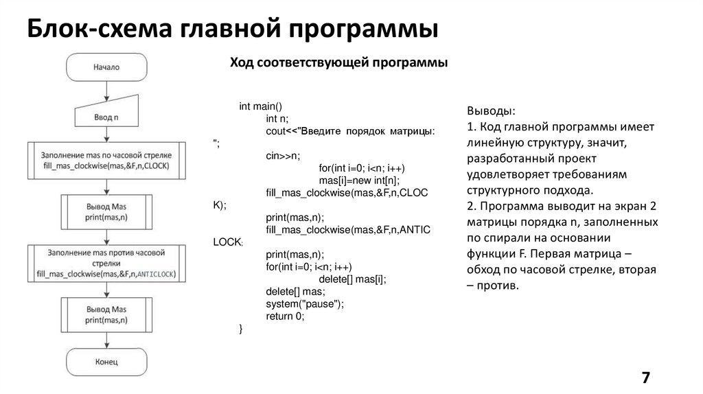 1. Код главной программы имеет