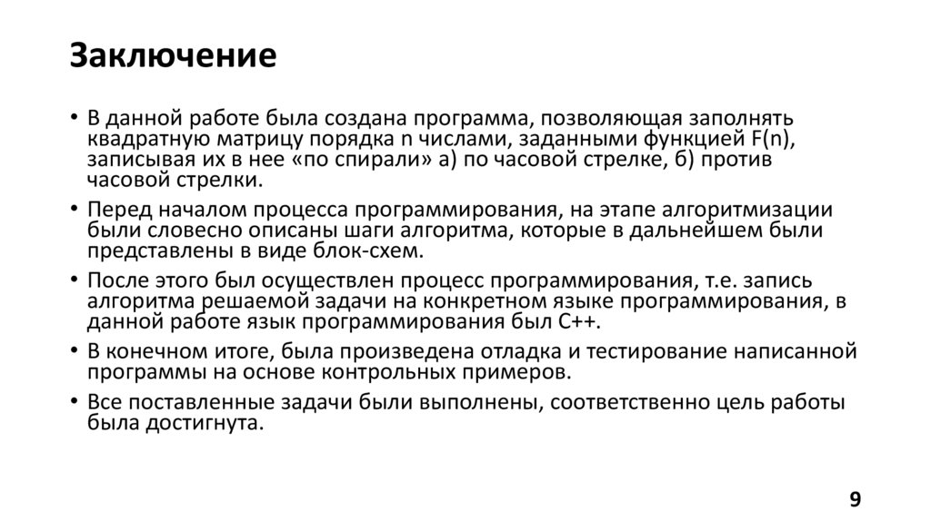 Заключение• В данной работе была создана программа, позволяющая заполнять