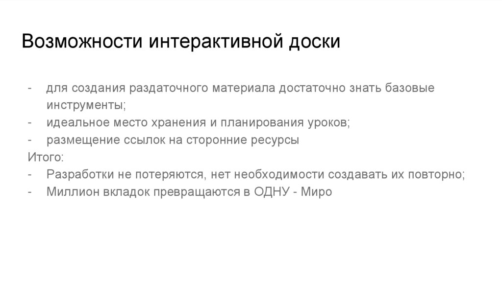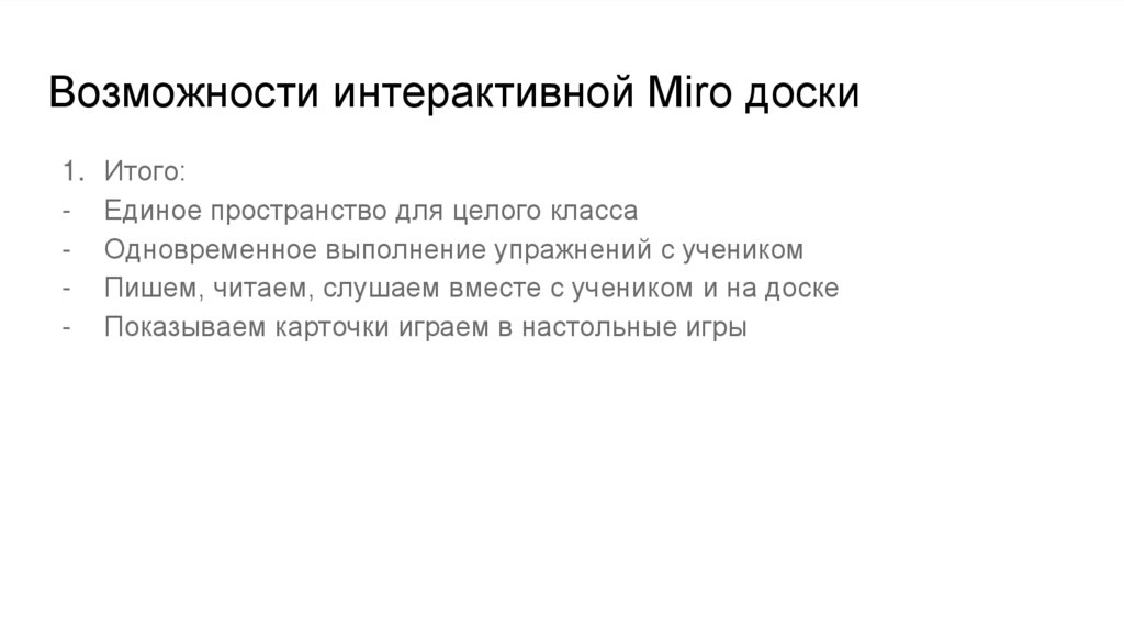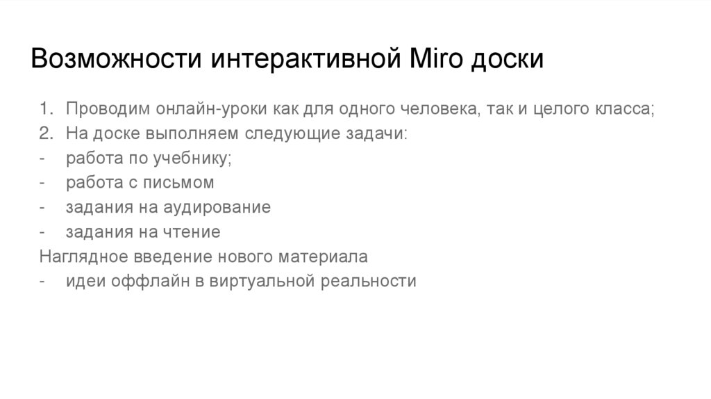 Возможности интерактивной Miro доски1. Проводим онлайн-уроки как для одного человека, так и целого класса;