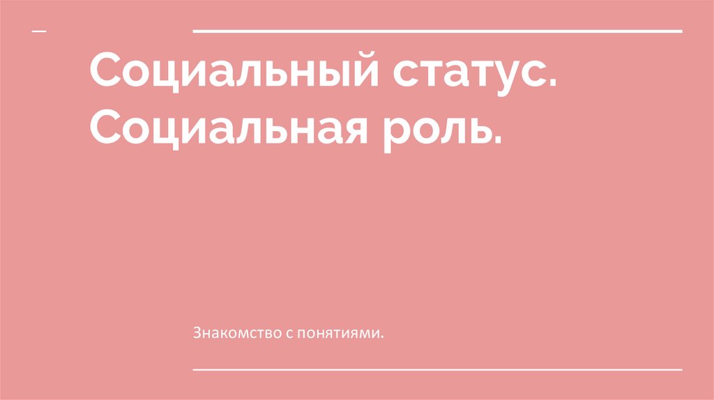 Социальный статус. Социальная роль. Знакомство с понятиям