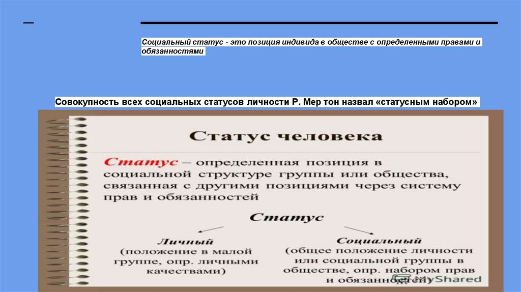Совокупность всех социальных статусов личности Р. Мер тон назвал «статусным набором»