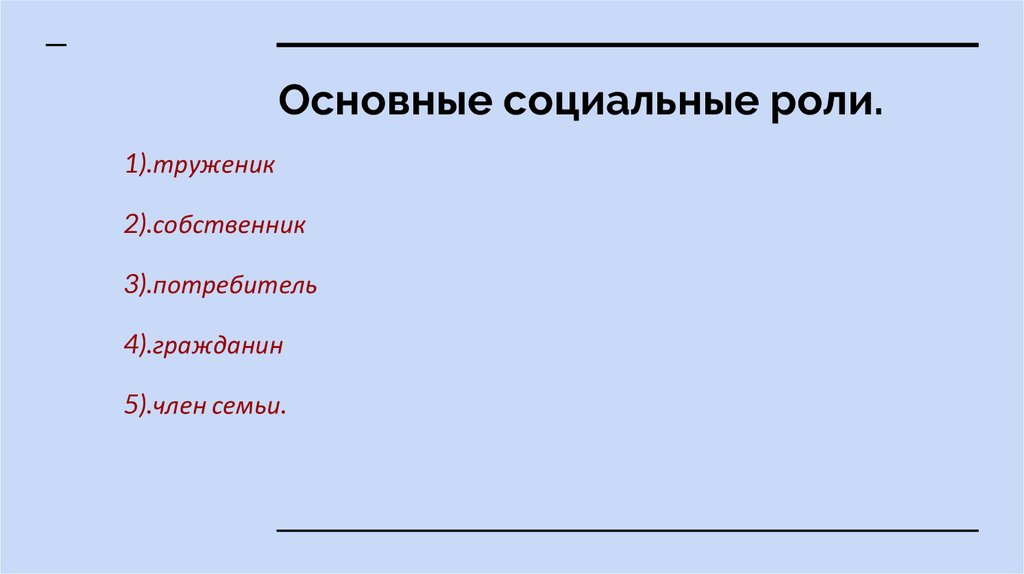 Основные социальные роли.1).труженик