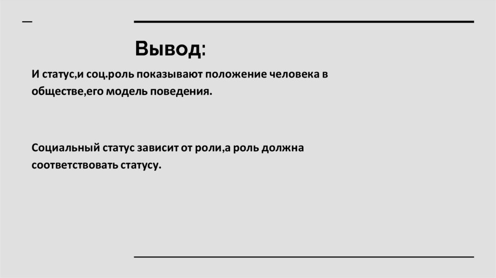 Вывод:И статус,и соц.роль показывают положение человека в