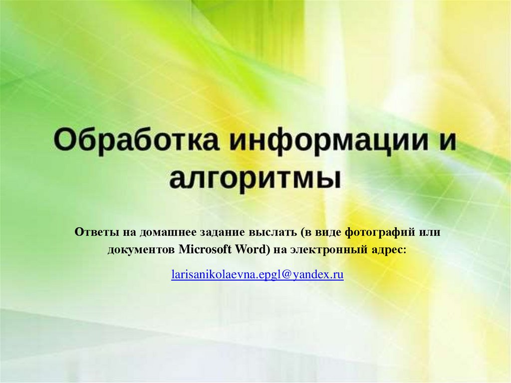 Ответы на домашнее задание выслать (в виде фотографий илидокументов Microsoft Word) на электронный адрес: