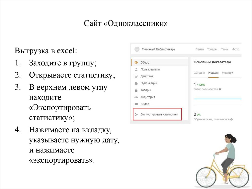 Сайт «Одноклассники»Выгрузка в excel: