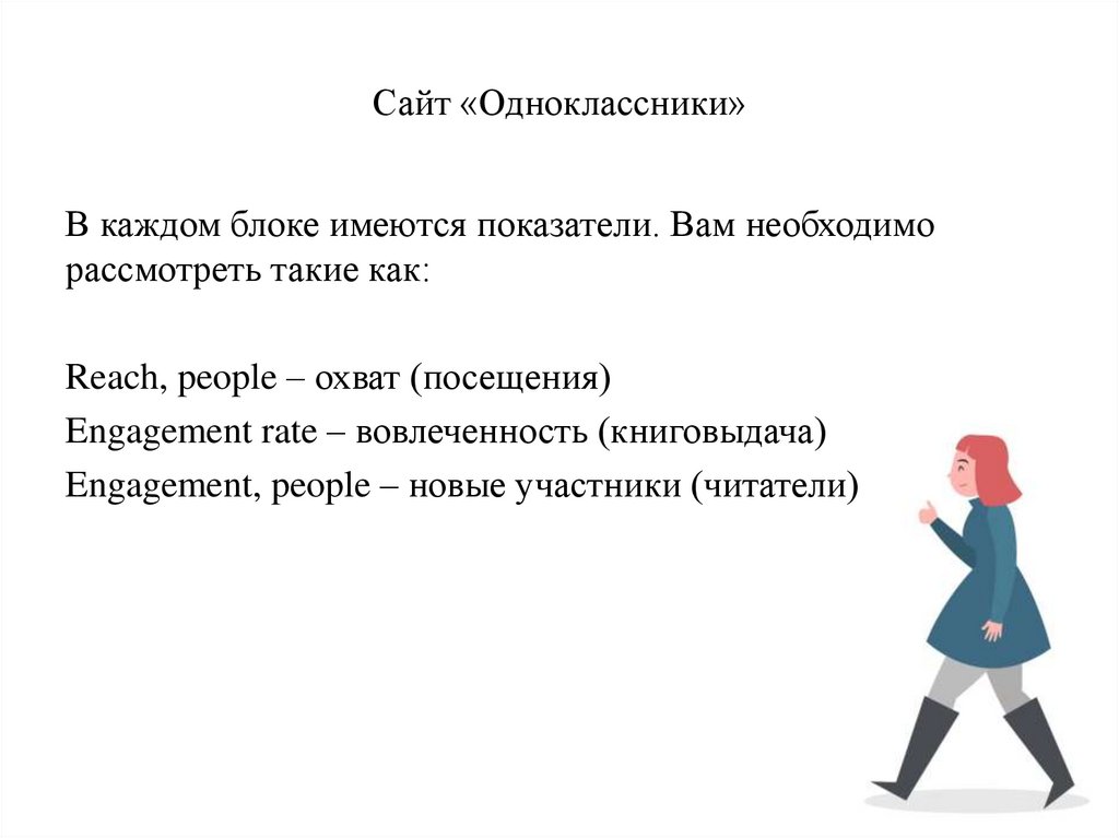 Сайт «Одноклассники»В каждом блоке имеются показатели. Вам необходимо