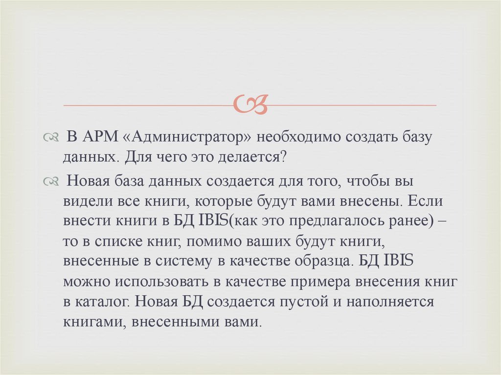 В АРМ «Администратор» необходимо создать базуданных. Для чего это делается?
