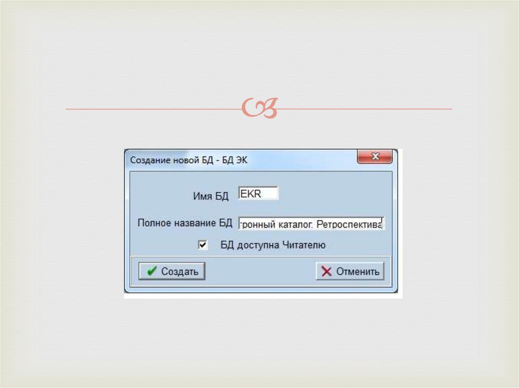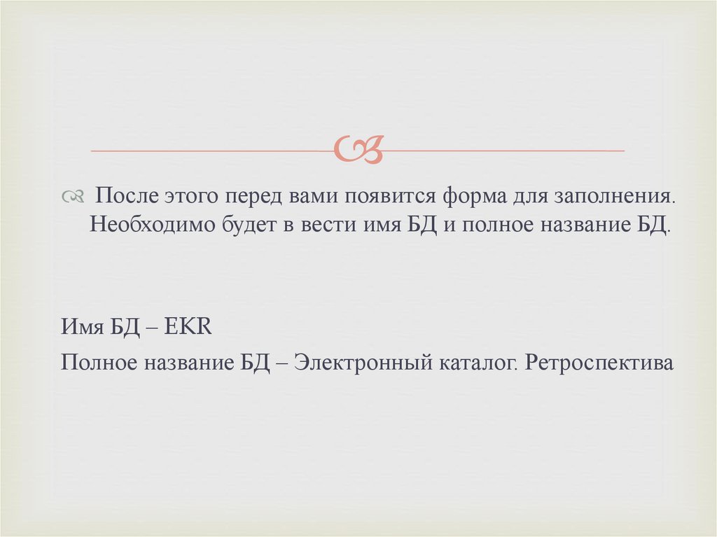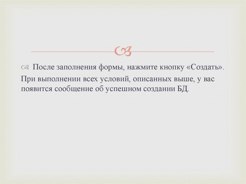После этого перед вами появится форма для заполнения.Необходимо будет в вести имя БД и полное название БД.