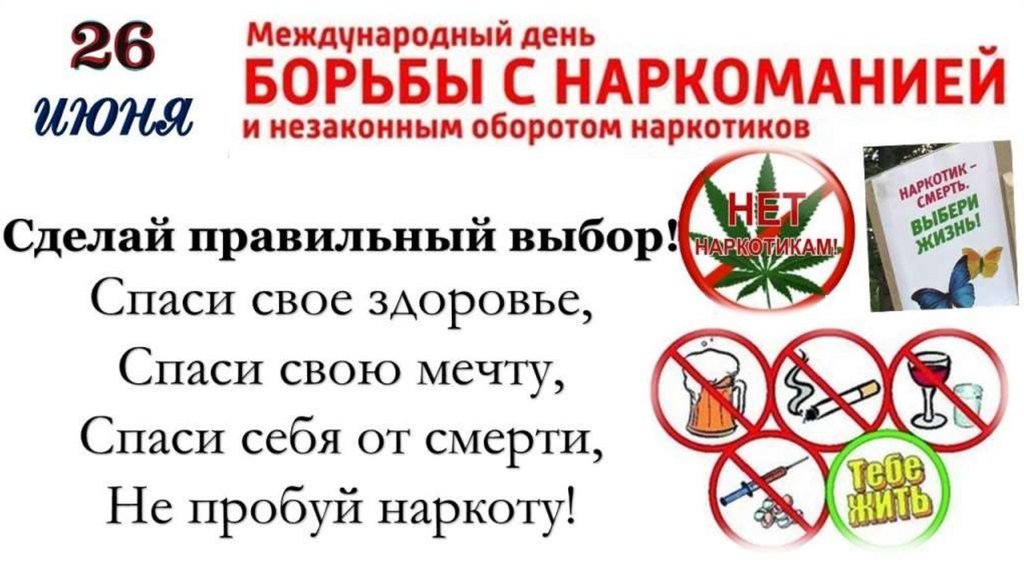 Месячник борьбы с наркотиками. 26 мая – 26 июня