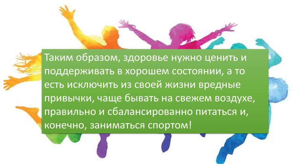 Таким образом, здоровье нужно ценить иподдерживать в хорошем состоянии, а то