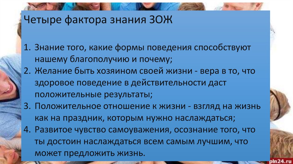 Четыре фактора знания ЗОЖ1. Знание того, какие формы поведения способствуют