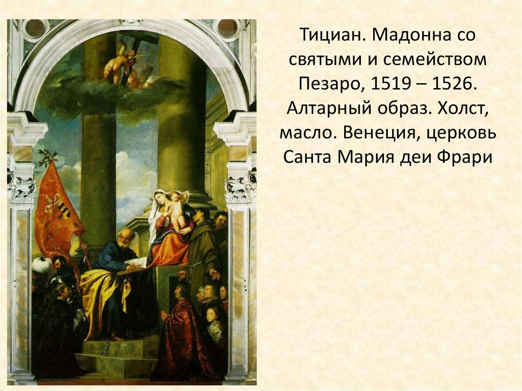 Тициан. Мадонна сосвятыми и семейством