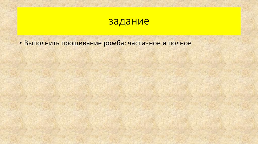 задание• Выполнить прошивание ромба: частичное и полное