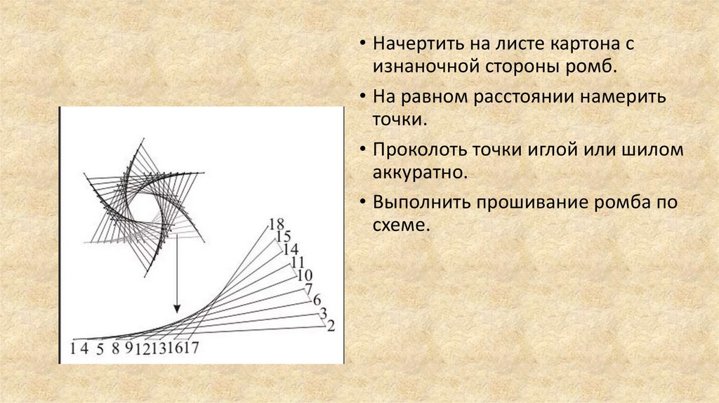 • Начертить на листе картона сизнаночной стороны ромб.