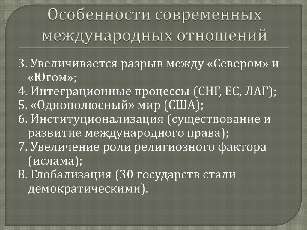 4. Интеграционные процессы (СНГ, ЕС, ЛАГ);