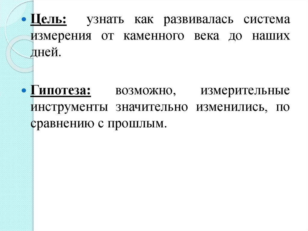 Цель: узнать как развивалась системаизмерения от каменного века до наших