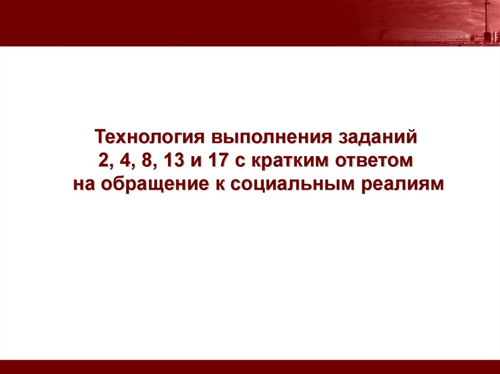 Технология выполнения заданий 2, 4, 8, 13 и 17 с кратким ответом на обращение к социальным реалиям